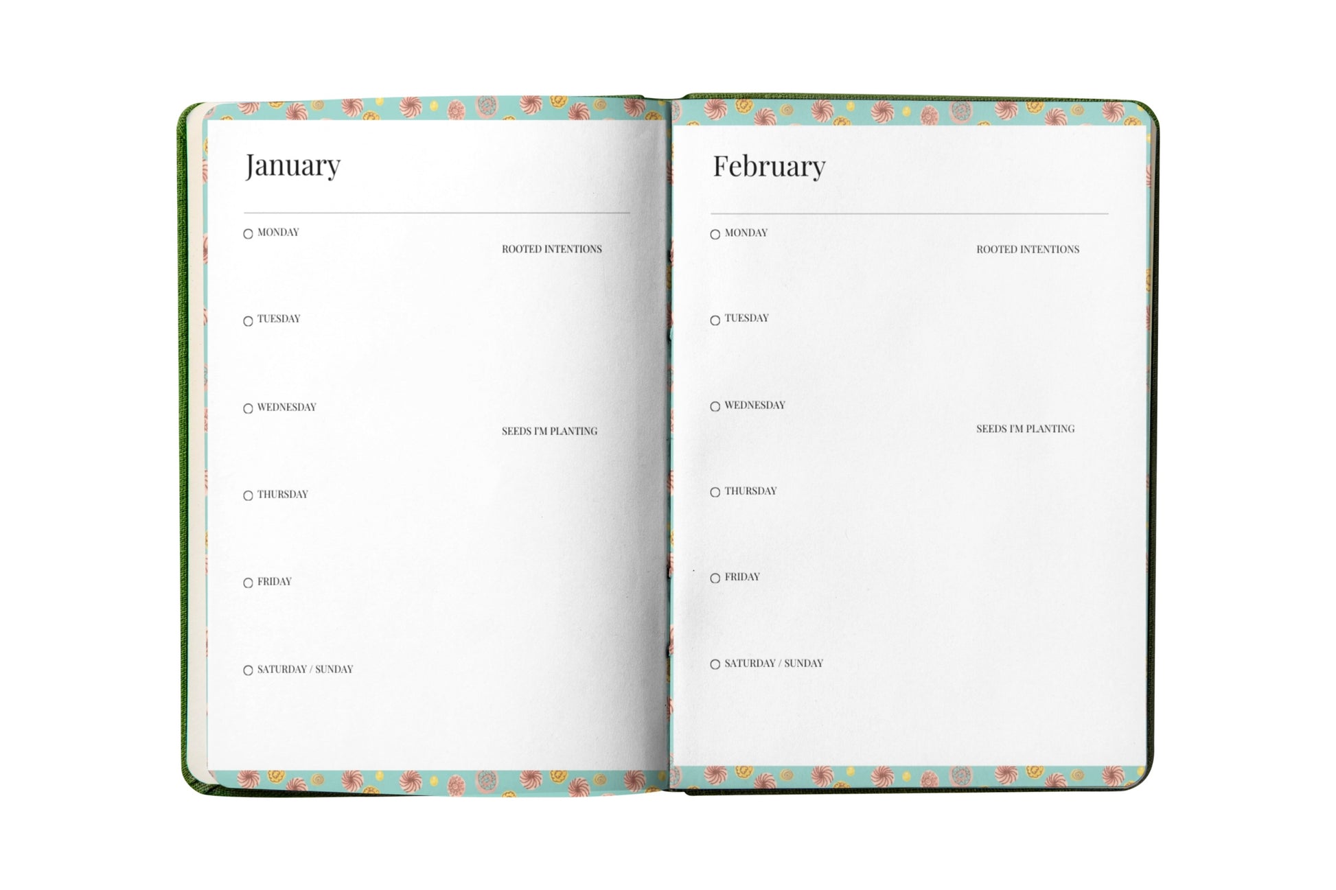 Invest in yourself with the Rooted in Joy 2026–2027 positive affirmation journal, created for women who carry a lot and still want to protect their peace. This colorful journal positive affirmation companion features original hand-painted art, monthly “Rooted Intentions” pages, and weekly space to record the “Seeds I’m Planting” in work, family, and self-care.